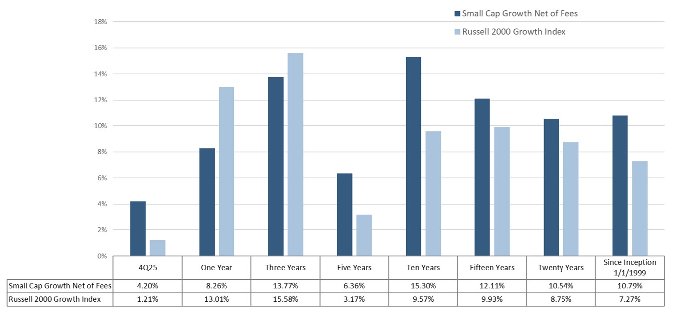We seek to generate long-term capital appreciation by investing in the fastest-growing and highest-quality companies in the US small cap growth universe
